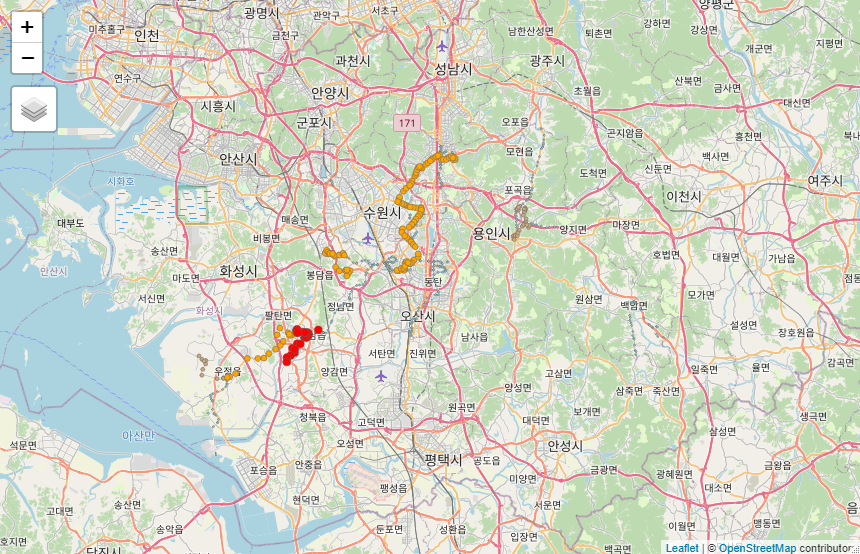 > # 도시 외곽 지역 주로 용인에서 출발하는 사람들은 평균 환승 횟수가 많은 것으로 나타났다.
