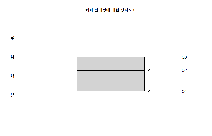 > bp <- boxplot(rc, main = "커피 판매량에 대한 상자도표")