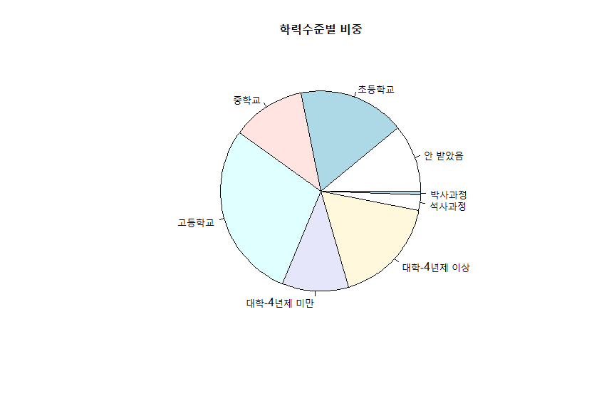 > data$교육정도코드 <- factor(data$교육정도코드, levels=1:8,