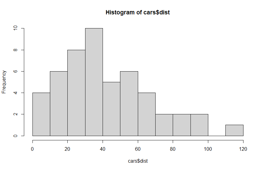 > hist(cars$dist, breaks = seq(0, 120, 10))