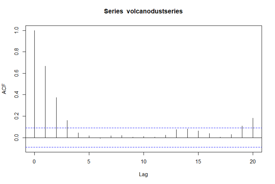 Autocorrelations of series ‘volcanodustseries’, by lag