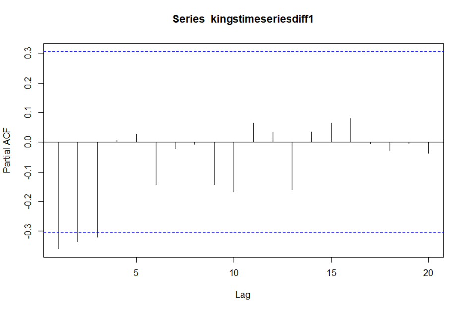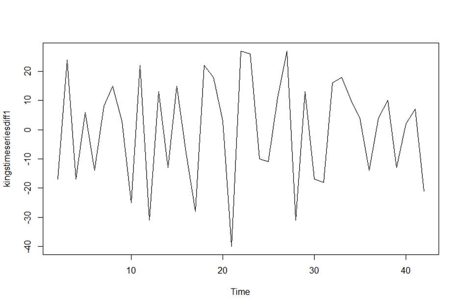 > kingstimeseriesarima <- arima(kingstimeseries, order = c(0,1,1))