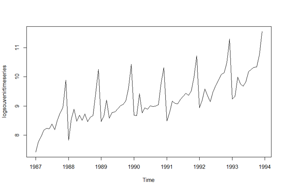 > logsouvenirtimeseries <- log(souvenirtimeseries)