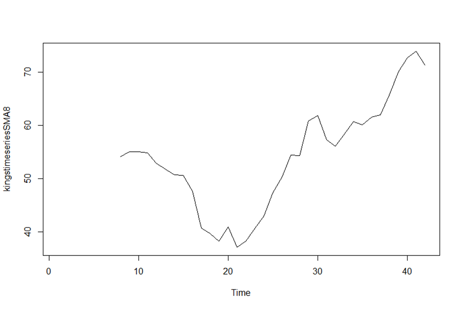 > kingstimeseriesSMA8 <- SMA(kingstimeseries,n=8)