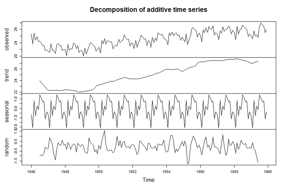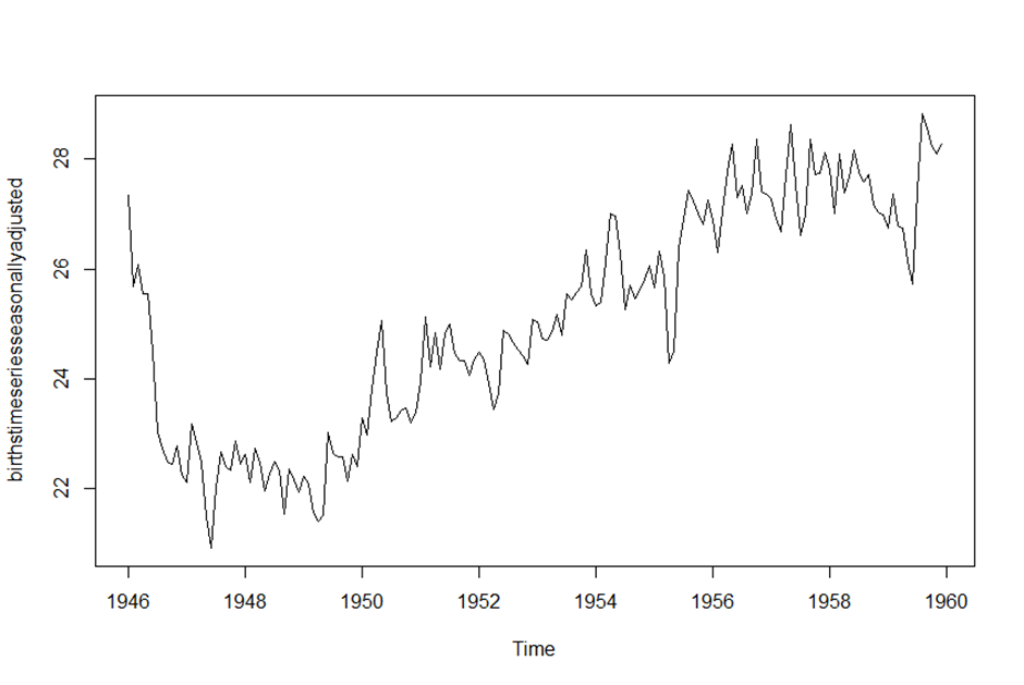 > birthstimeseriescomponents <- decompose(birthstimeseries)